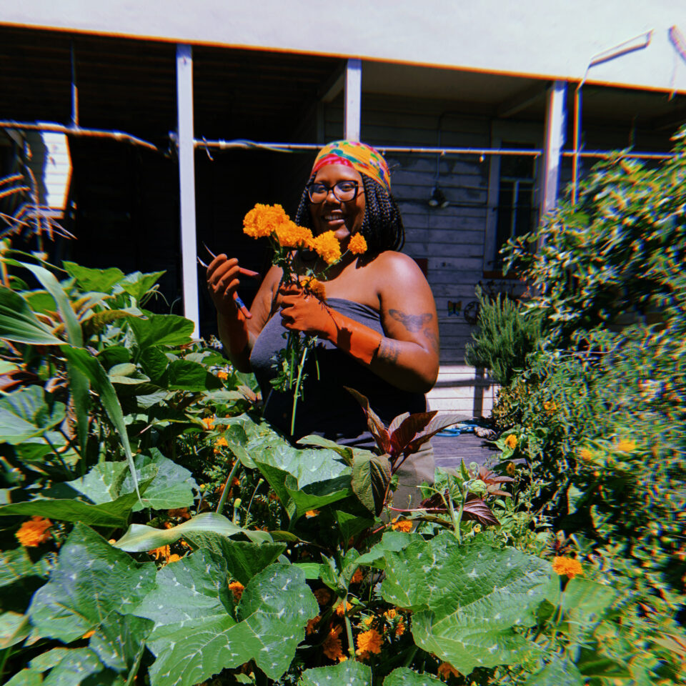 Hello! My name is Ashlee Johnson-Geisse and I am a Black queer woman farmer and the founder of Brown Girl Farms. Located in Hayward, California, our farm was birthed from my belief that black queer women farmers need more representation and celebration in the growing world. Brown Girl Farms serves to “spread loving intention through food and flowers” and centers on Black and Brown communities. Our farm runs a small CSA program where we provide market vegetables, African American heritage crops, and unique seasonal flower bouquets to community.
